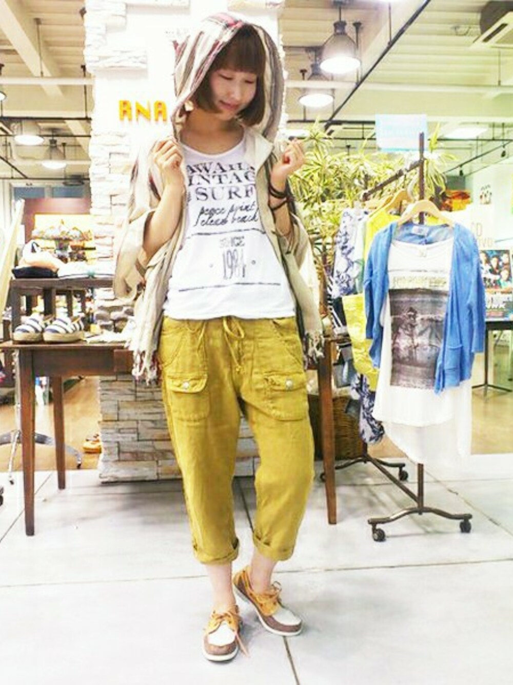 Kaoriのポンチョ「J1642 オリジナル先染めストライプポンチョパーカー」を使ったコーディネート