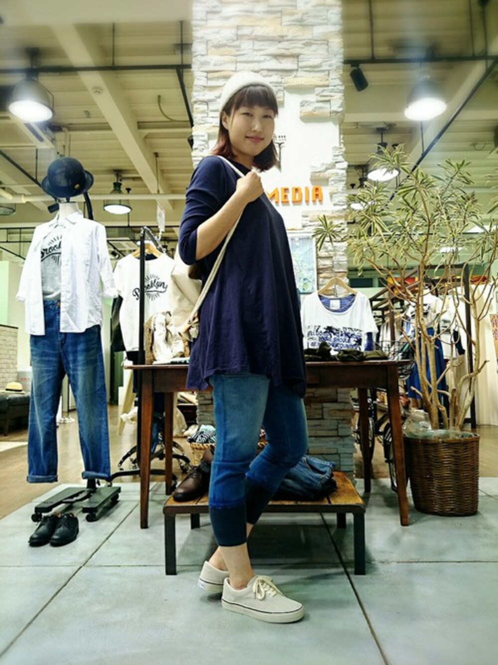 チュニックワンピ→L9933 チュニックワンピにスウェットデニムで、ストレスフリーな着心地です。