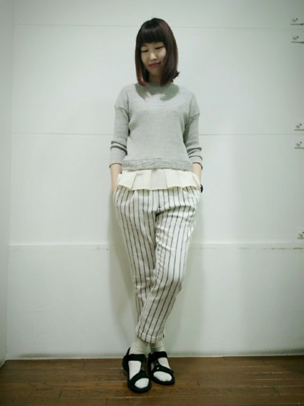ペプラムトップスに、ストライプパンツやスポーティーなサンダルを合わせ、甘すぎないコーディネートにしました。 サンダルはソールに弾力があり、疲れにくいですよ☆