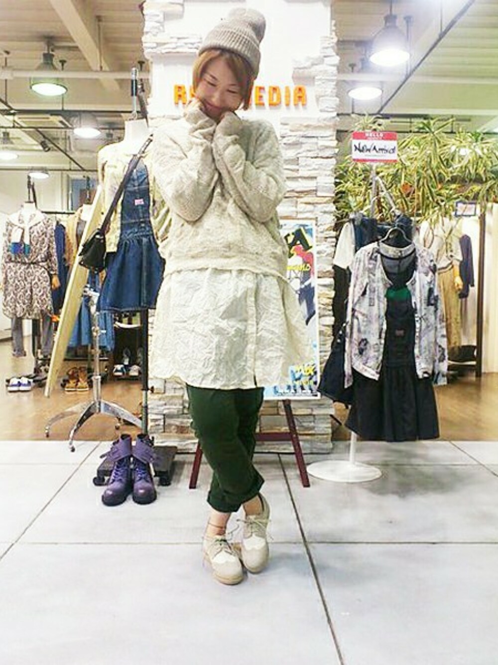 ワンピとセットになっているニットは、着るだけでおしゃれに見える、らくちんコーデです♪