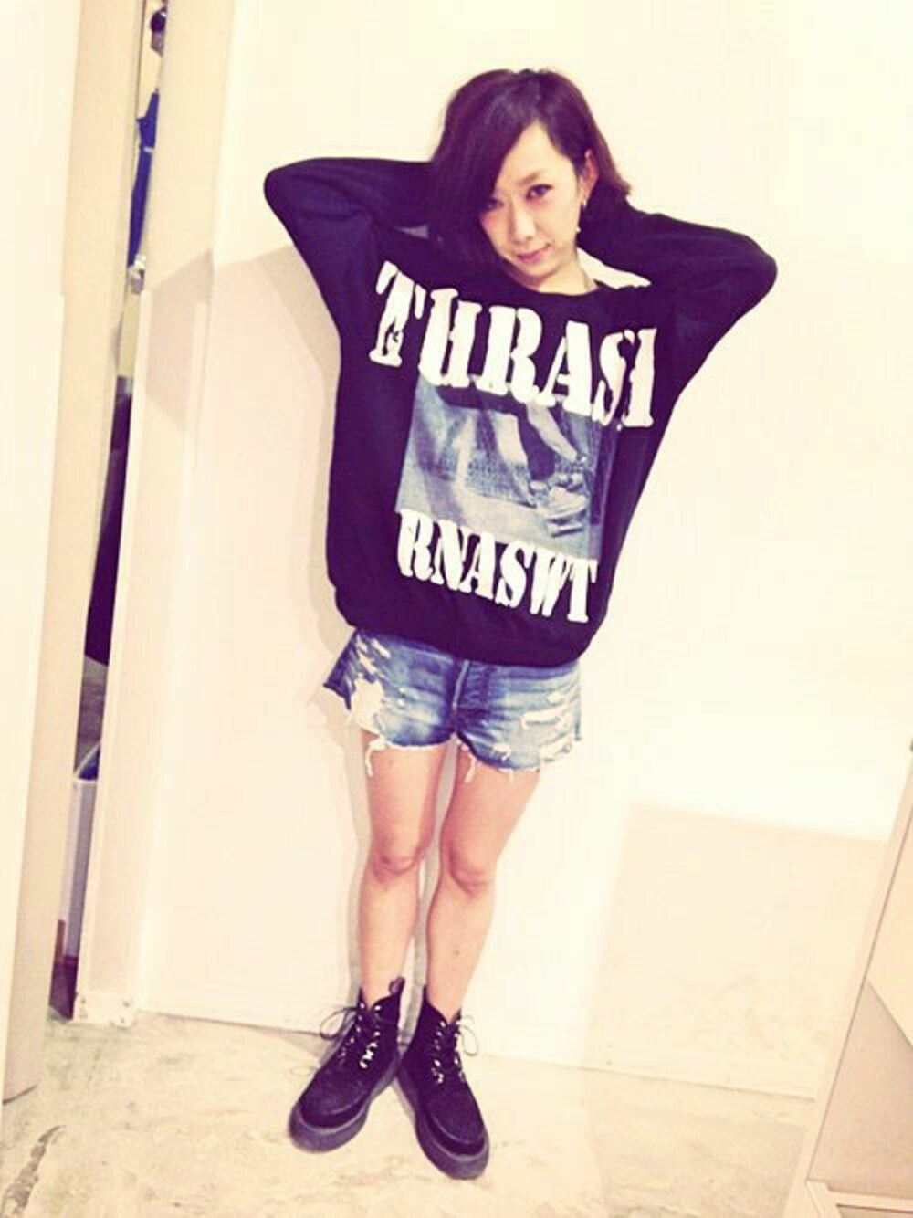 moritasonのTシャツ/カットソー「L9201 スラッシュフォトBIGトレーナー」を使ったコーディネート
