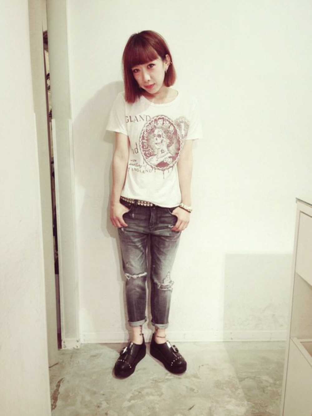 moritasonのデニムパンツ「R2806 ダメージ9分丈スリムパンツ」を使ったコーディネート