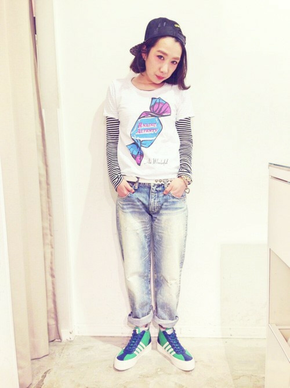 デニムパンツがメインのカジュアルな元気コーディネートです。