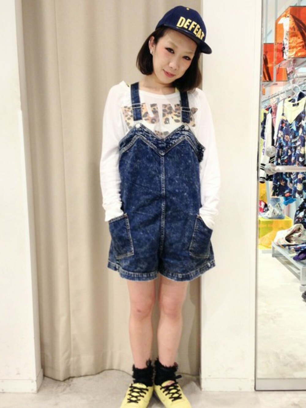 シンプルで少し変わったデザインのサロペットには、ロゴがインパクトのある裏毛トレーナーとCAPを合わせてストリート感のあるコーディネートにしてみました ▽