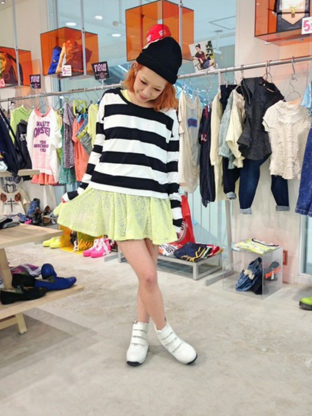 ボーダー×ヒョウ柄チュチュワンピの柄コーディネートです▽足元はボリュームスニーカーでバランスよく◯