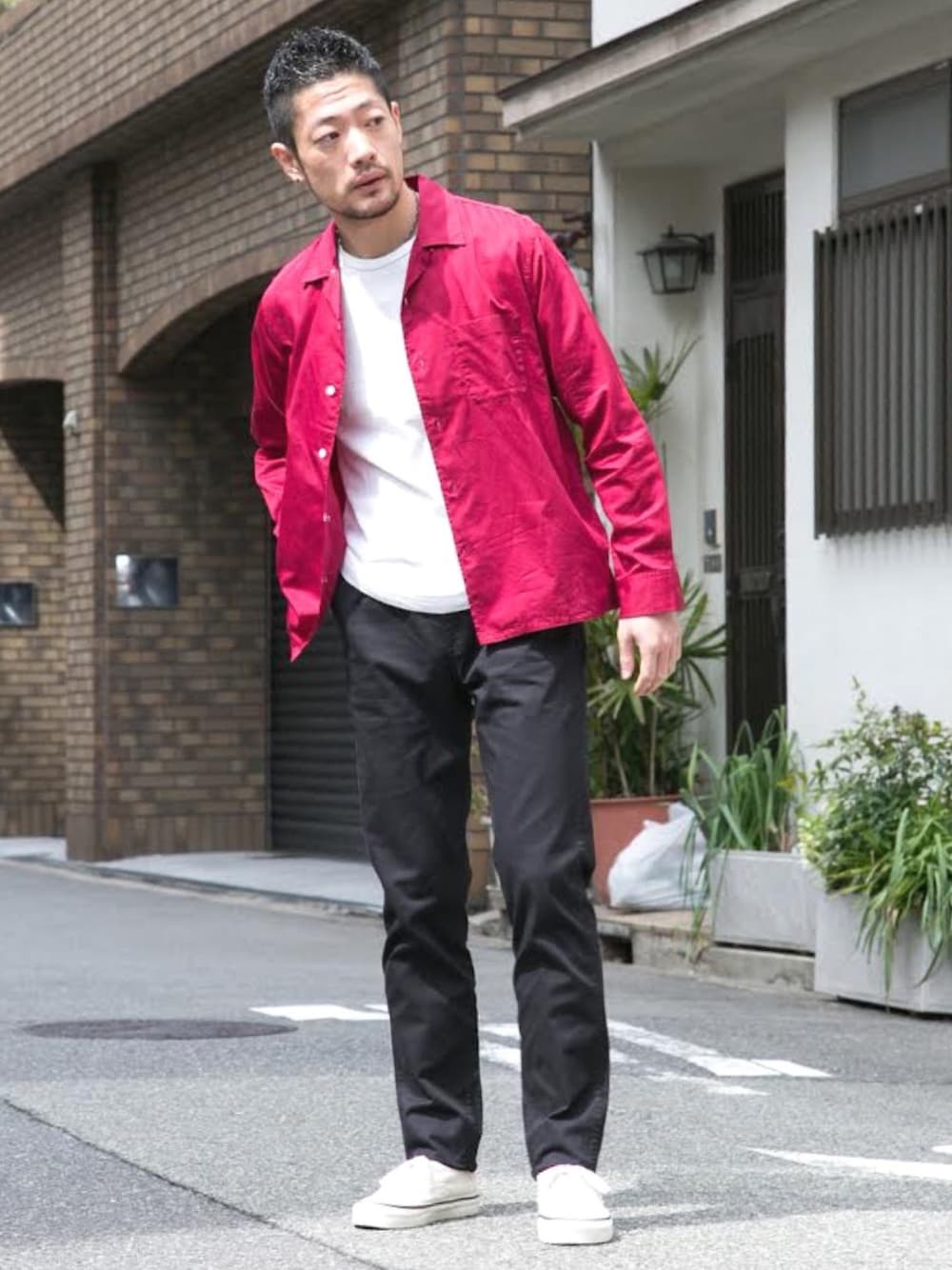 天気の良い日には鮮やかな発色のオープンカラーシャツをチョイス。 前を開けても羽織っても閉じてもOKな万能シャツ◎ いよいよオープンカラーの季節ですね。 ブラックパンツで引き締め、大人っぽさも忘れずに。