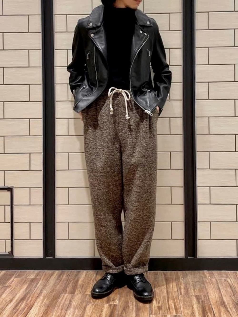 ROSSO MENのライダースジャケット「ダブルレザーライダースジャケット」を使ったコーディネート