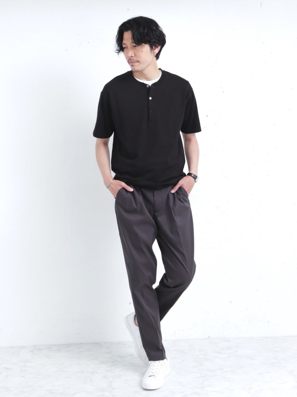 ROSSO MENのTシャツ/カットソー「汗染みしにくいヘンリーネックTシャツ」を使ったコーディネート