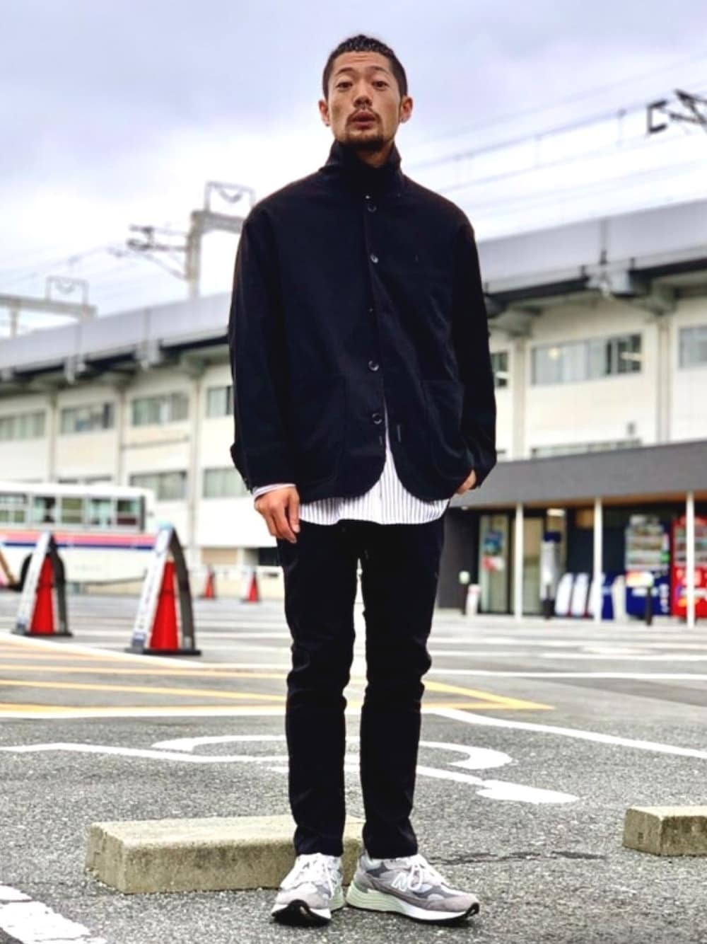丸井織物のセットアップスタイル! クールなオールブラック。 パンツはグラミチ別注の渾身のトリプルコラボ仕様! この秋冬イチオシのアイテムです。