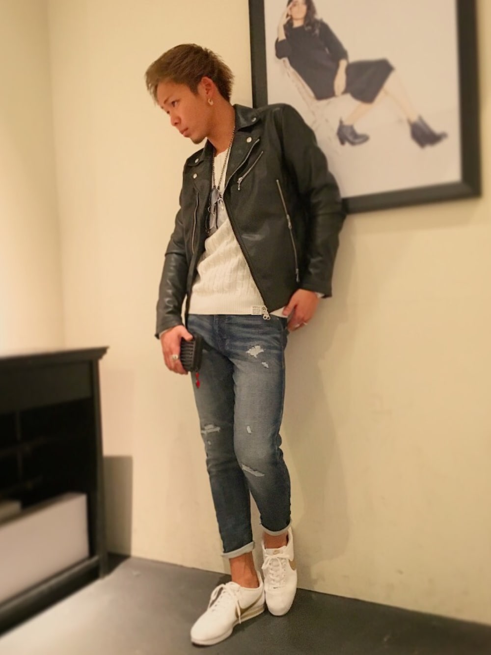 RYUのライダースジャケット「合皮タブルライダース」を使ったコーディネート