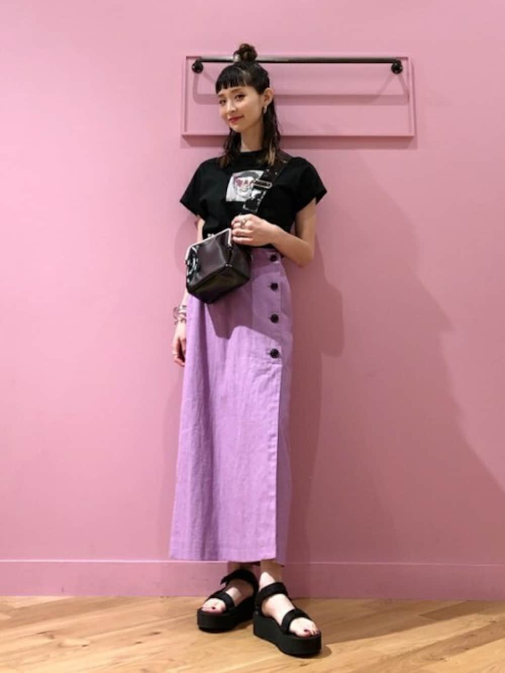 Tシャツのカラフルなペイントに合わせてスカートはパープルをチョイスしました♩♩