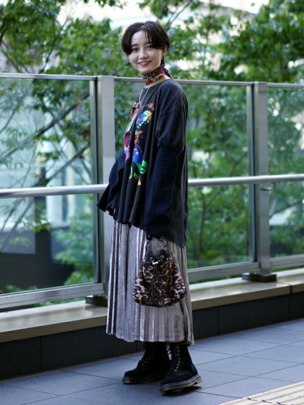 トレンドのベロア素材のスカートは今季一押しアイテムです☆★リメイクカットソーを合わせてきれい目なスカートを着崩しました!