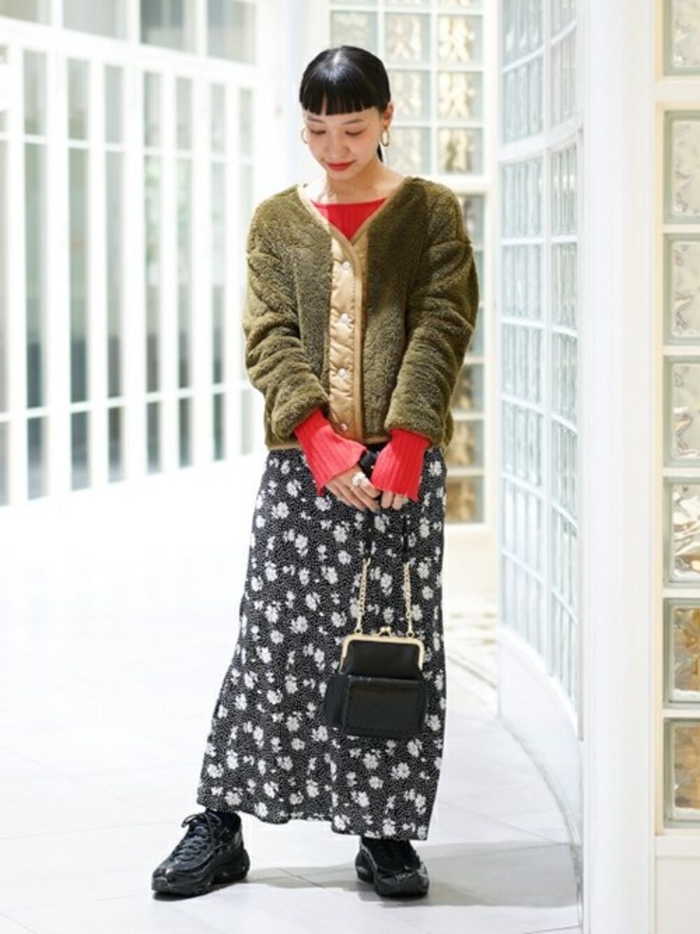 ボリューム感のあるボア素材のアウターは袖を少し上げ、インナーを見せる事でバランスを取るのがマイルールです!