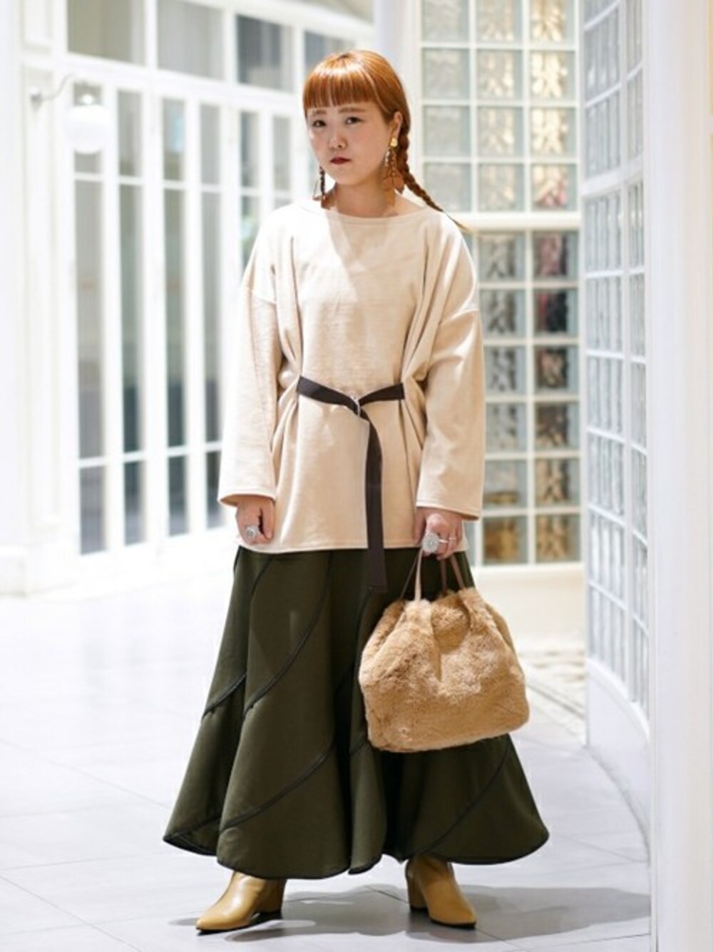 トーンを合わせてスタイリングしました。 <RBS>のスカートは、是非一度お試し頂きたい可愛いアイテムです! そして、ファーBAGは冬にマストですね!