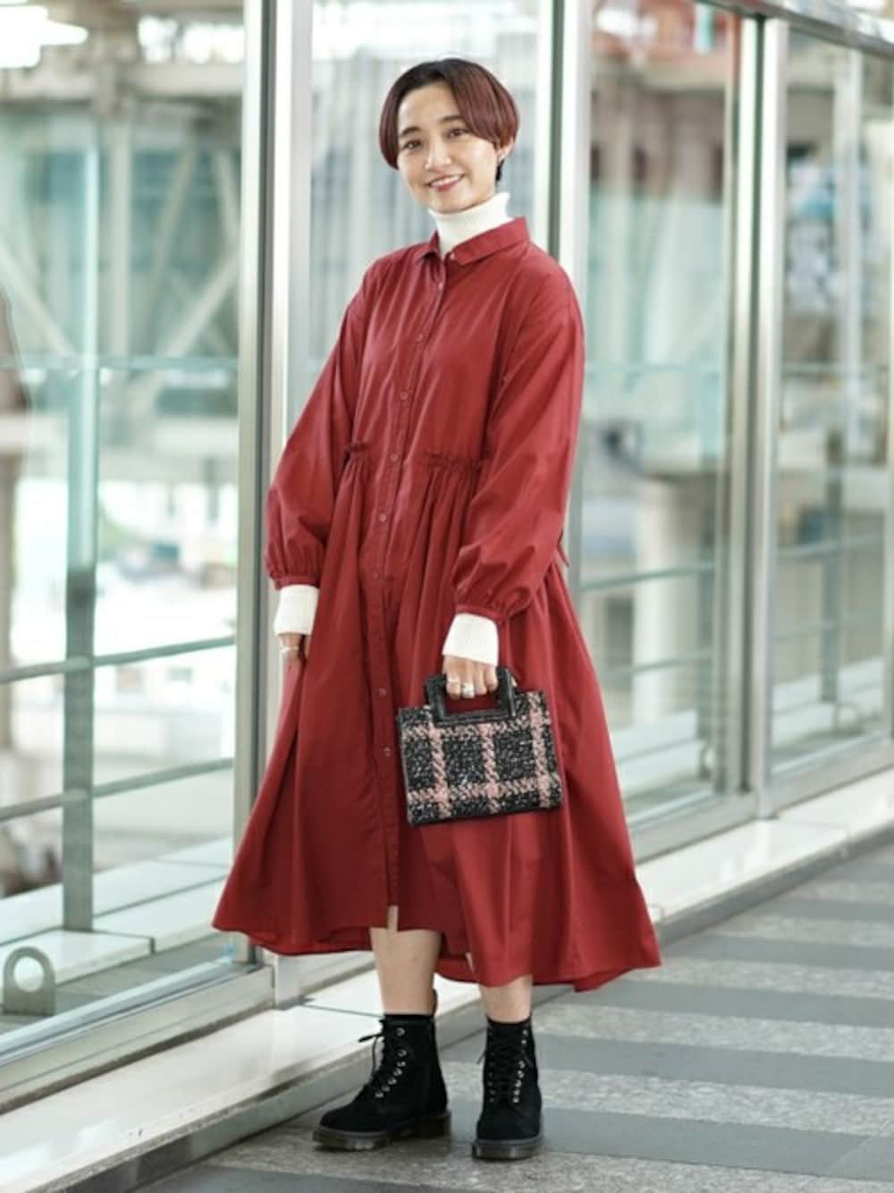 ギャザーワンピースに新色のブラウンが追加されました☆★小物をブラックで統一しました!