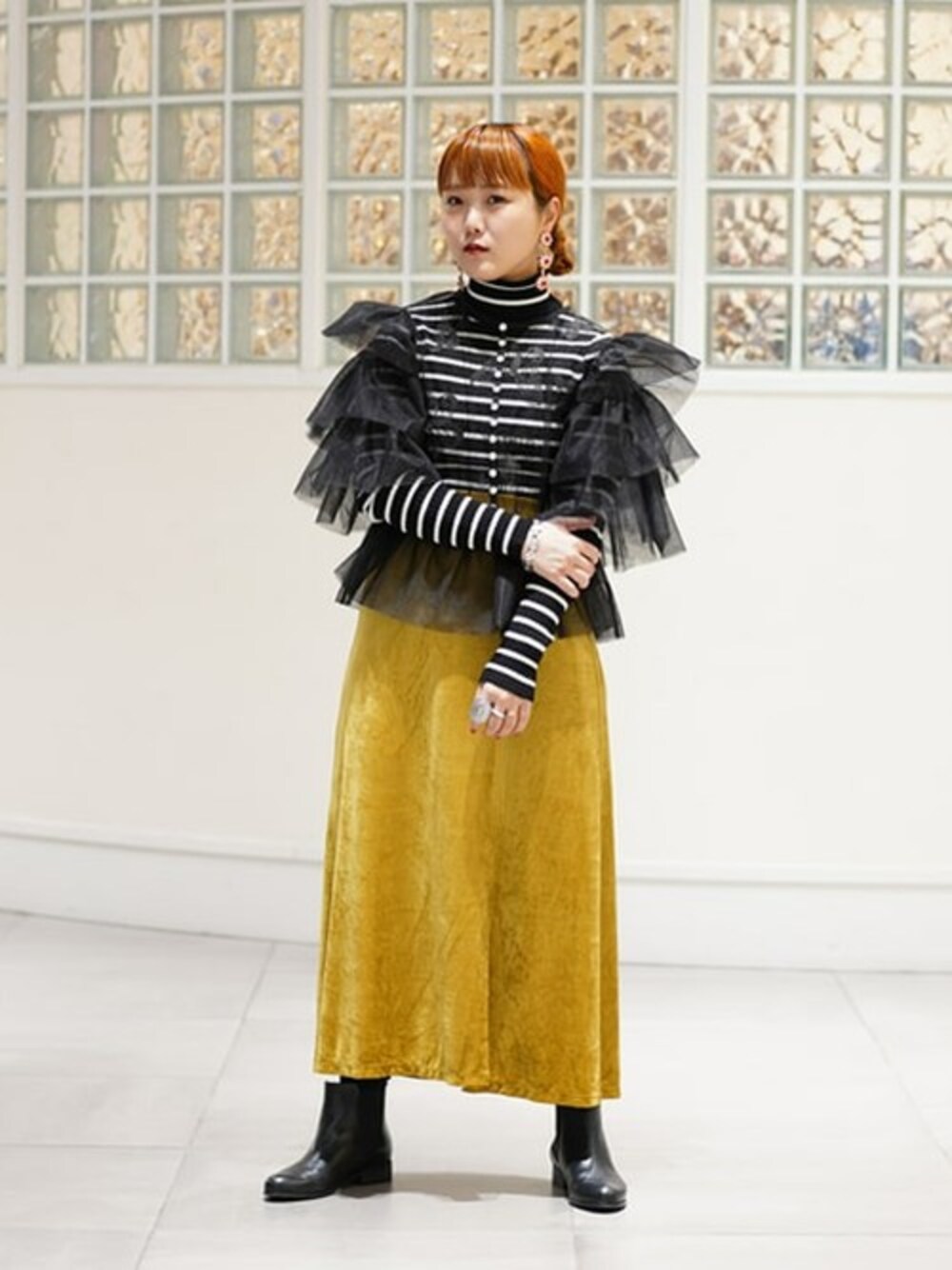 テーマ、柄にもなくダークトーンでスタイリングしたのにやっぱり女子といえばのピンクのイヤリングを付けてしまった私です。 カッコいいモードなスタイリングにもゴージャスなアクセサリーがおすすめです!