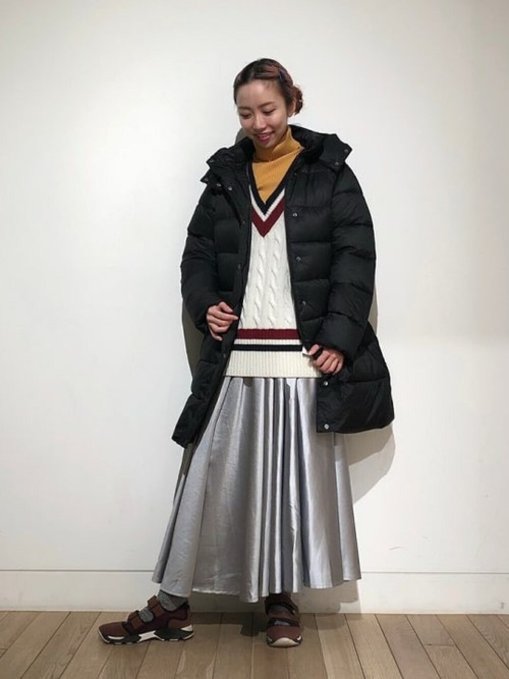 チルデンベストを着て、いつもと少し違う雰囲気に。タートルと合わせたり、シャツワンピと合わせたり、着回し出来そうです!