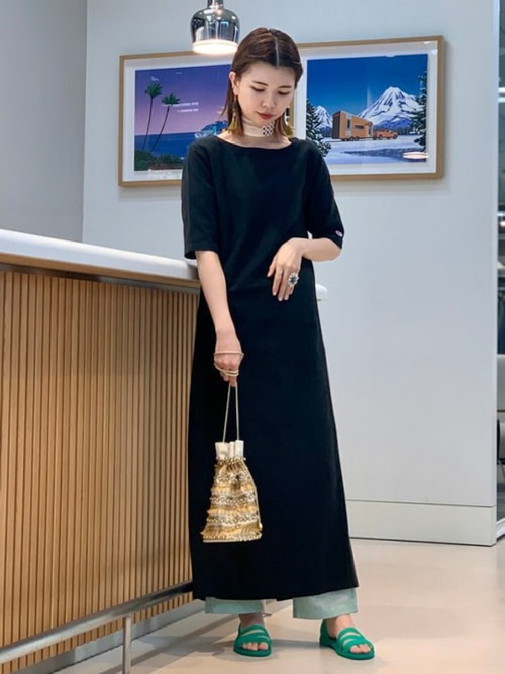 ご予約承り中の<Champion>ワンピースをメインにした、ブラック×ミント コーディネートです!