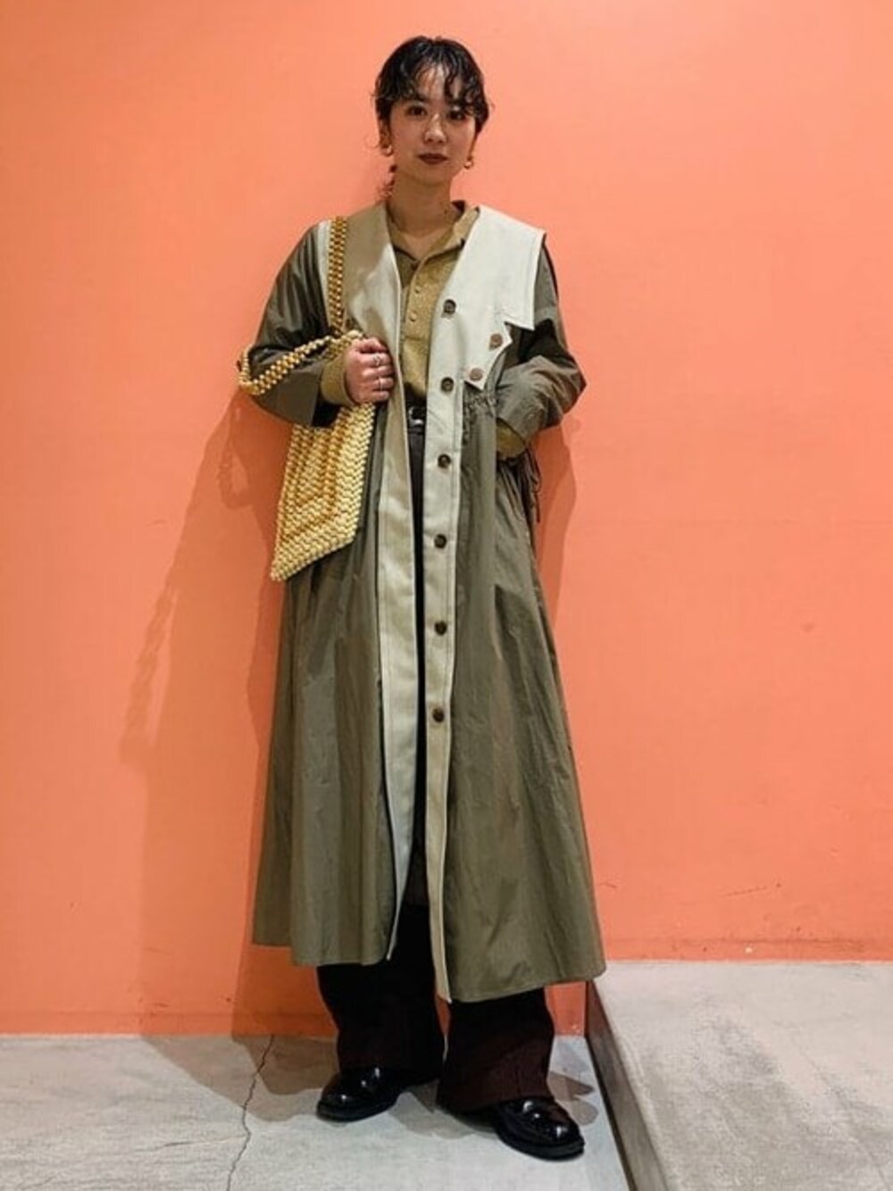 大きめの襟が可愛い<RBS>のワンピースを羽織りとして着用しました!軽いので今の時期からさらっと着れます。