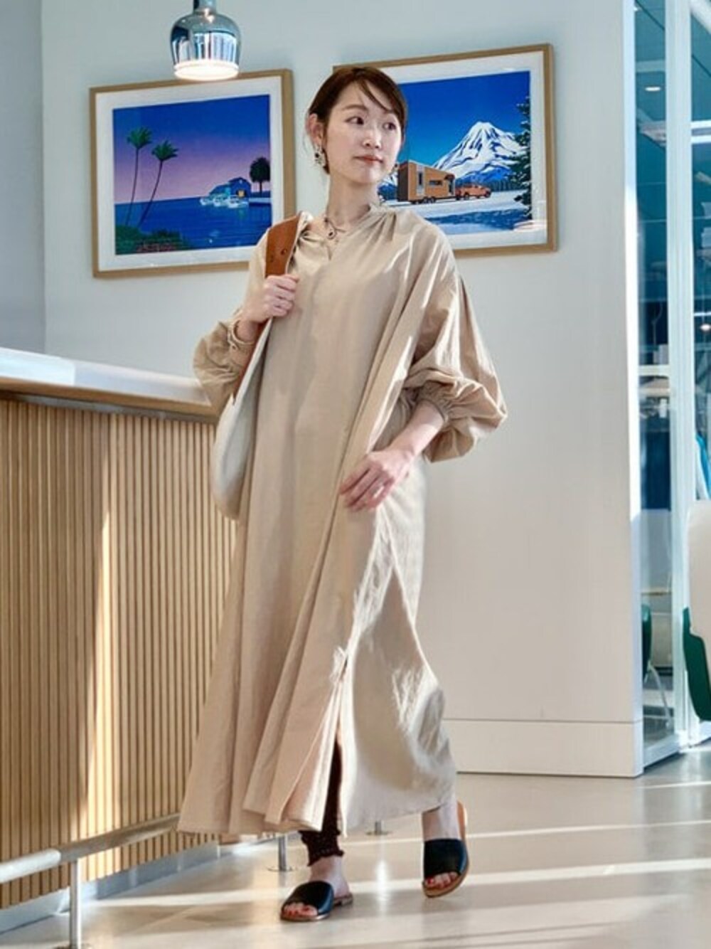 Ray BEAMS(BEAMS WOMEN)のシャツワンピース「Ray BEAMS / ボリューム ギャザー ワンピース」を使ったコーディネート