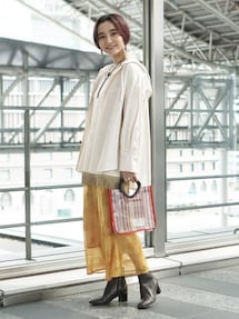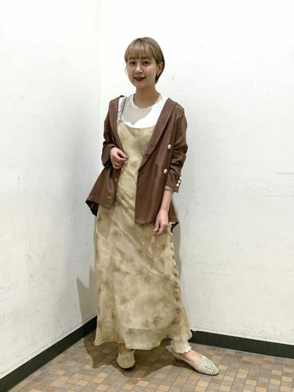 全体的にトーンを合わせてBEIGE on BEIGEのスタイリングを組んでみました! タイダイ柄のワンピースも今季お気に入りの1着です!