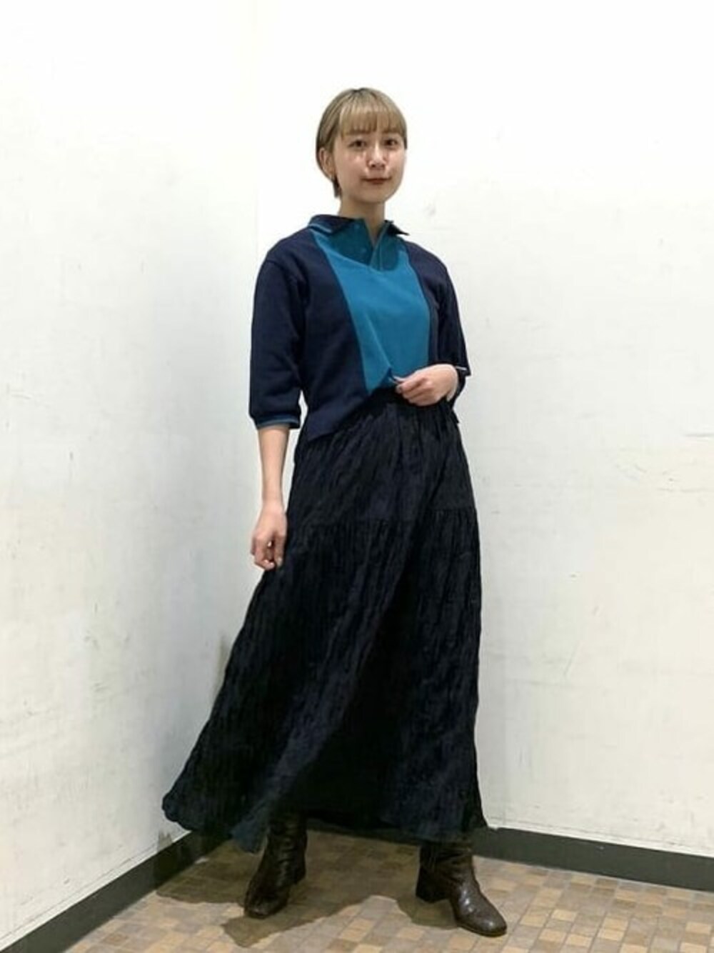 背面に、championの刺繍が入ったRay BEAMS別注のポロシャツです。 かなりカジュアルな印象ですのでさらっとした動きが女性らしいスカートとヒールを合わせました!