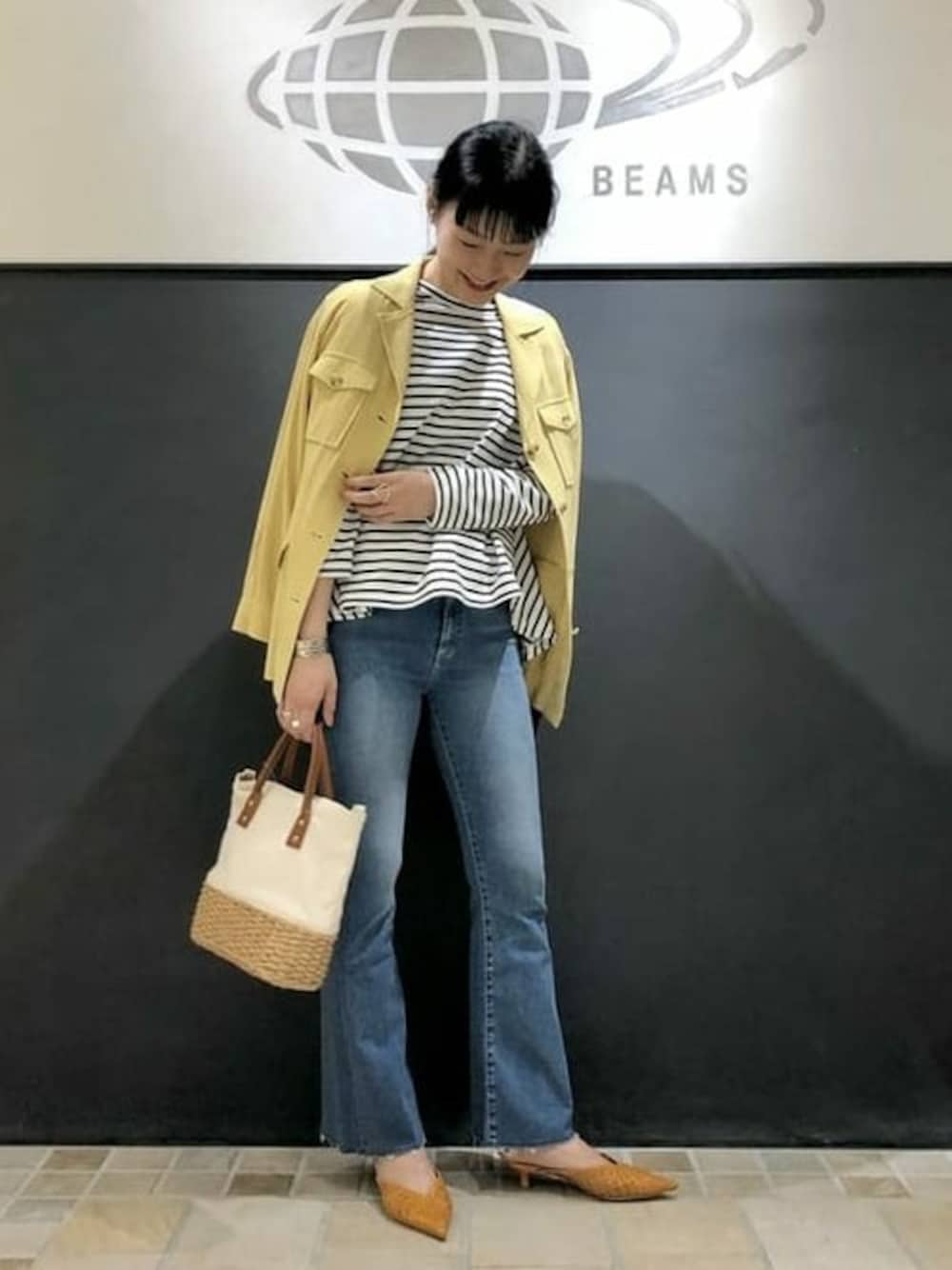 ピクニックスタイルをイメージしました!ストレッチの効く【Red Card】のデニムをチョイス。春らしいイエローのジャケットを差し色に!