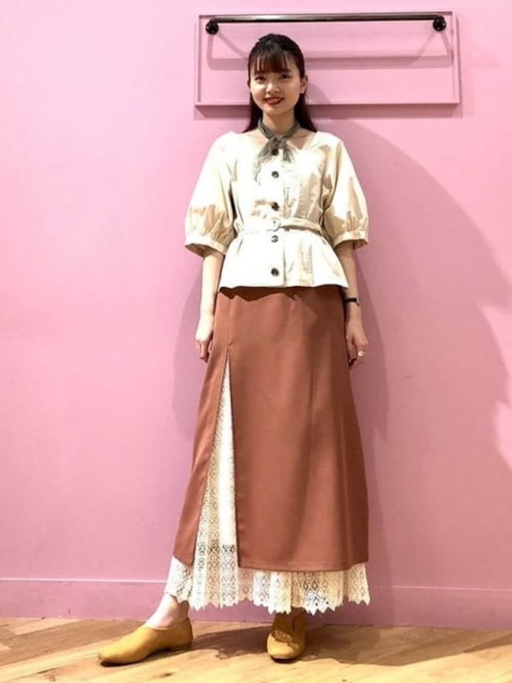 ワンピースを下にレイヤードしてスカート、ブラウスと合わせてみました♩ 首元が空くのでストールを巻いて色をプラスしました。