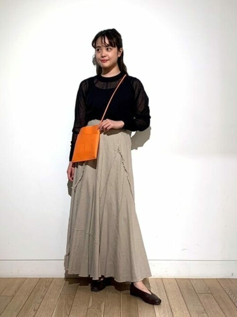 トップスをスカートにインして、メリハリのあるスタイリングにしました。トレンドのシアー素材が可愛いです!