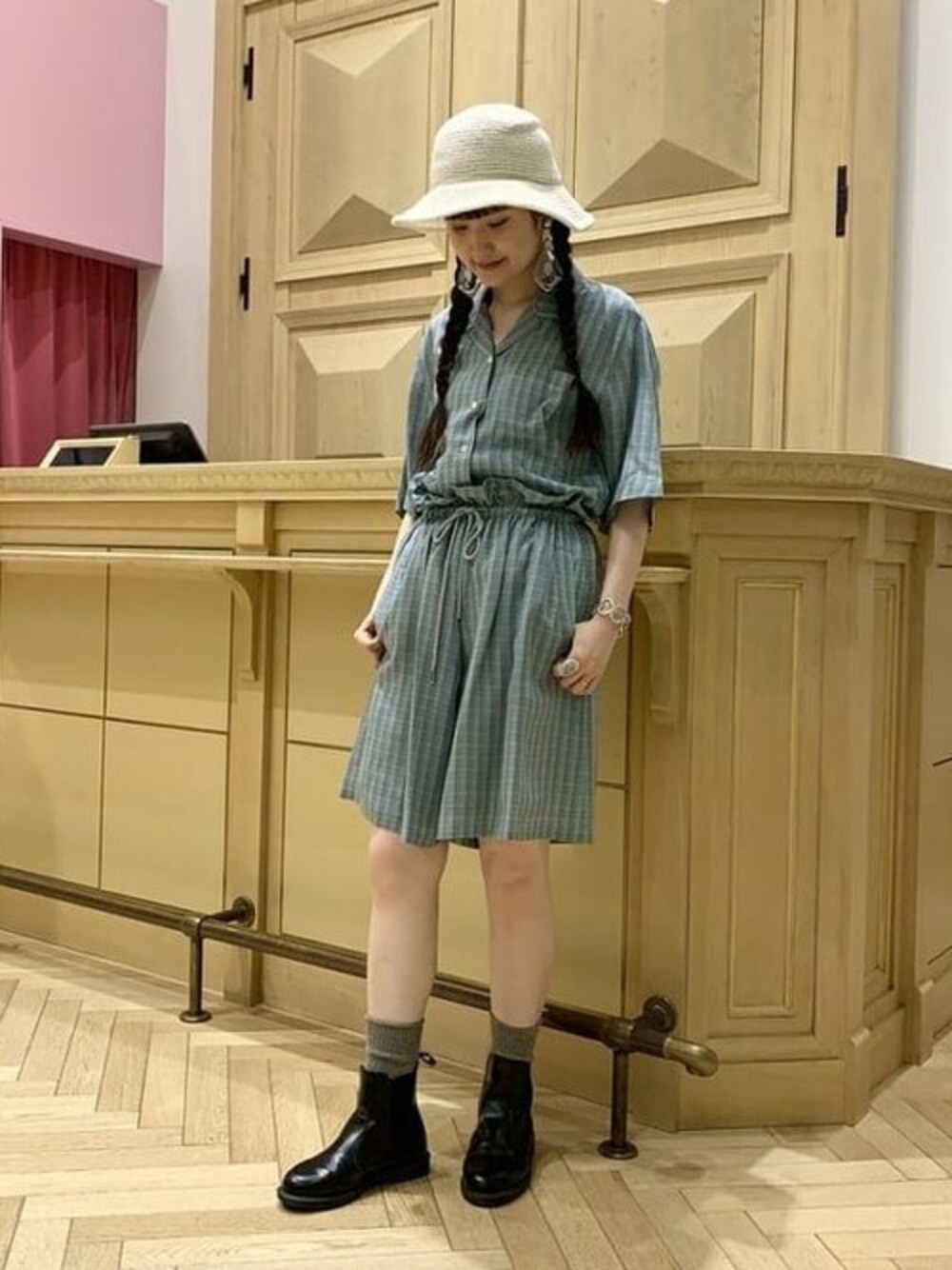 爽やかな配色のセットアップに、パイル地のハットを合わせてとことん夏らしくまとめました。 Name.×Ray BEAMS別注のセットアップはさらっとした生地感なので夏まで快適に使えそうです!