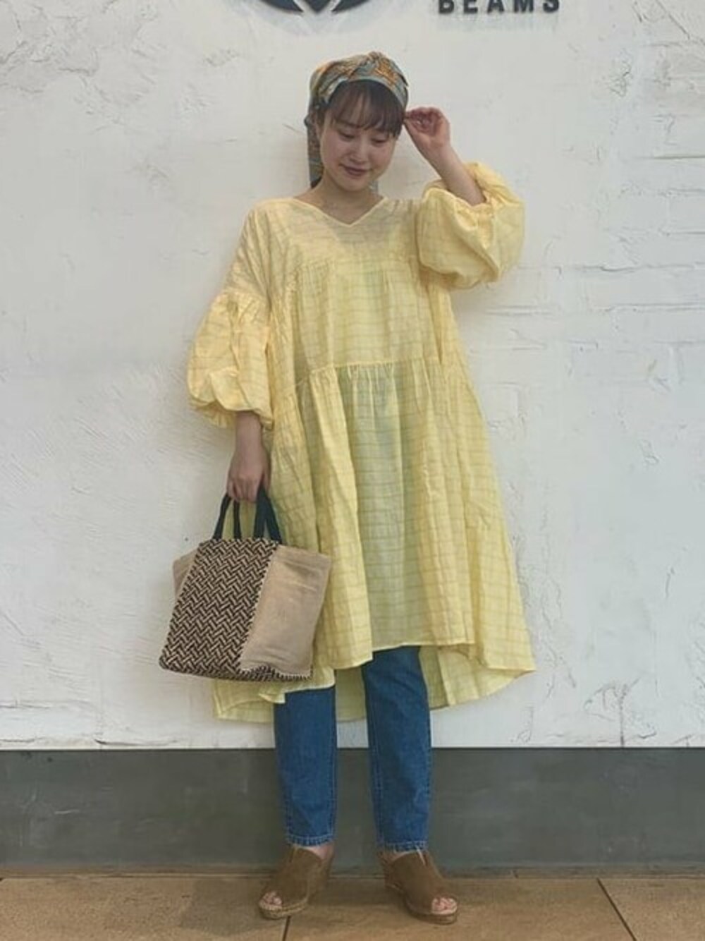 黄色のワンピースを主役に。ピクニックを想像してスタイリングしてみました。
