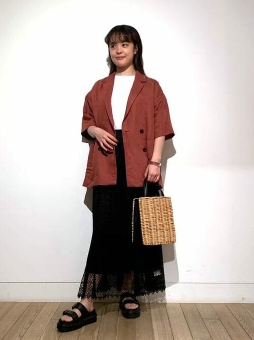 リネンジャケットをメインに、シンプルなスタイリングにしました。着回し出来る万能アイテムです!