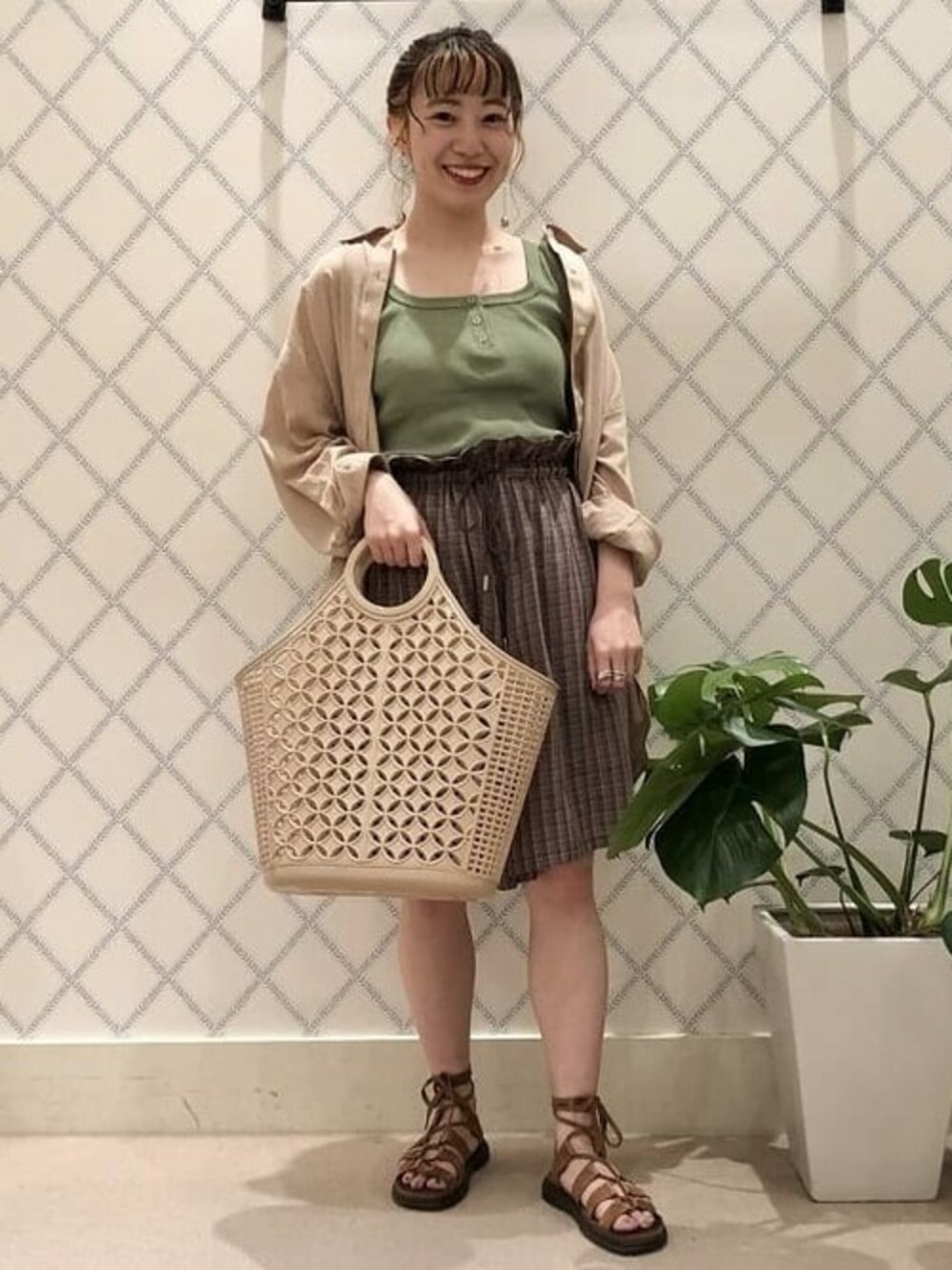 ショートパンツは少し長めな丈感がお気に入りです。シャツを合わせてラフになりすぎないようにしました。
