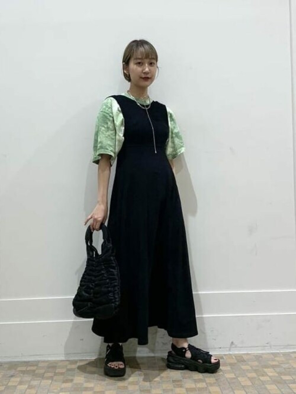 〈LOS ANGELES APPAREL〉のワンピースは着心地がかなり良くて、今年の夏はヘビロテ間違いなしです! 足首見える丈の時はシューズはゴッテゴテのものがすきです!