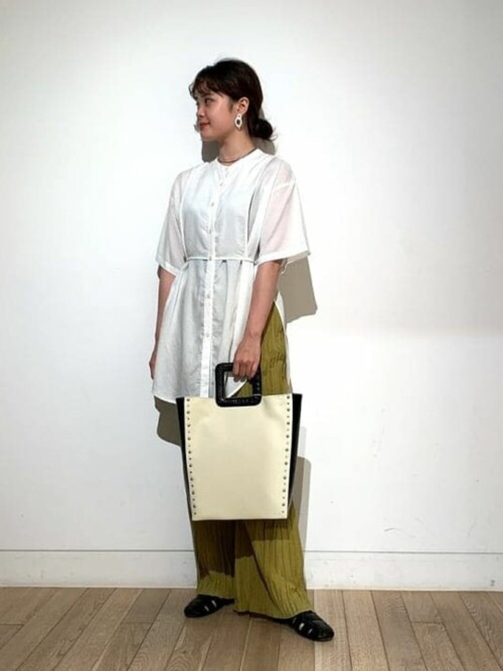 Ray BEAMS(BEAMS WOMEN)のシャツ/ブラウス「Ray BEAMS / ビブヨーク ロング シャツ」を使ったコーディネート