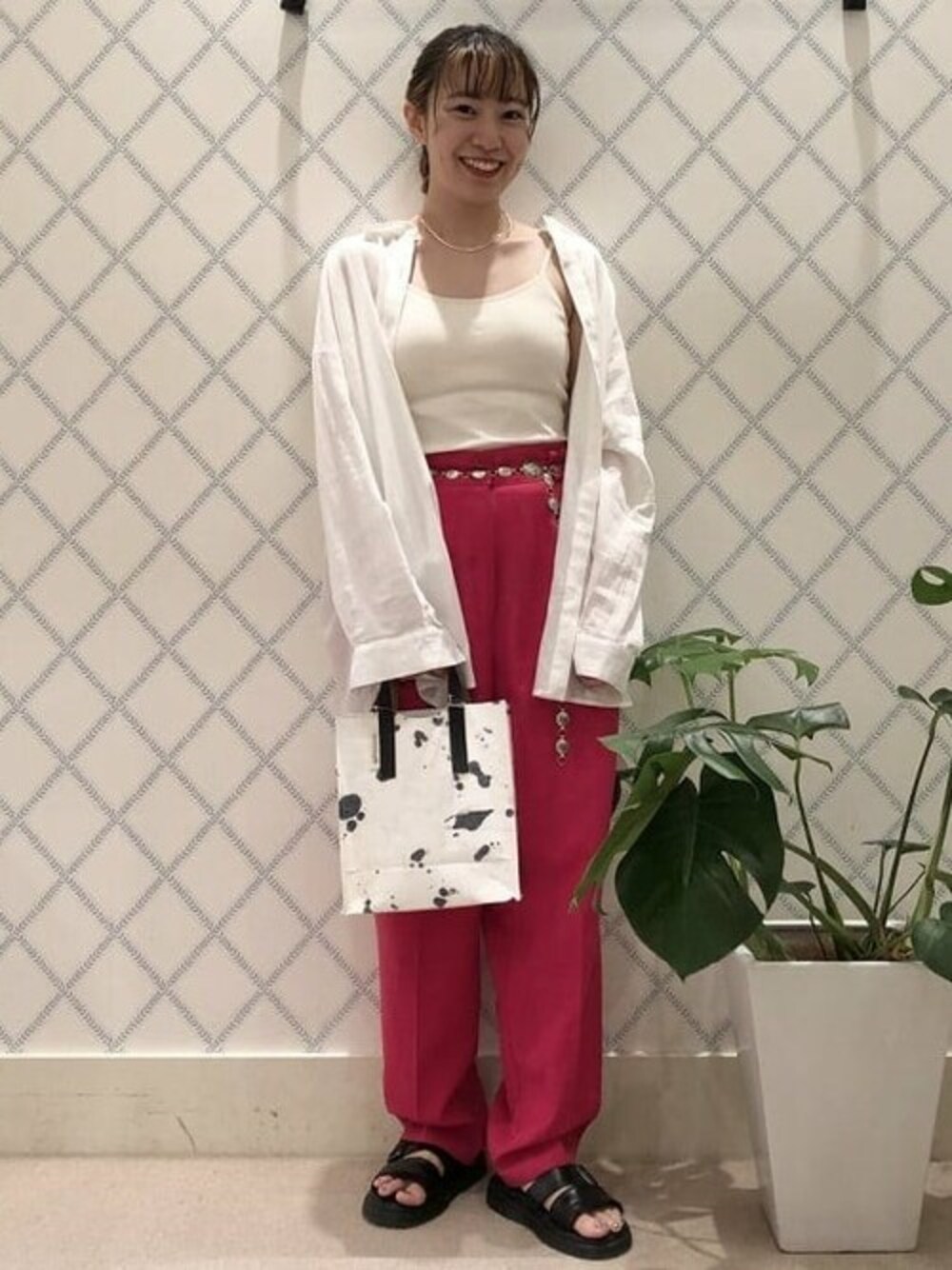 着心地抜群なキャミソールは透け感があるシャツと合わせてスッキリ見せました。