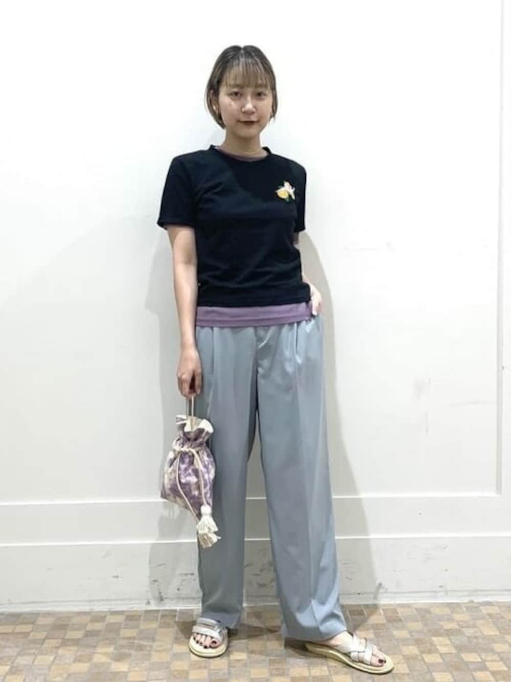 紫×ブルーで爽やかなスタイリングに。 上からブラックのTシャツを重ねることでまとまりあるカラーリングにしております。 着用のパンツは、履き心地がすごくいいのでおすすめです。