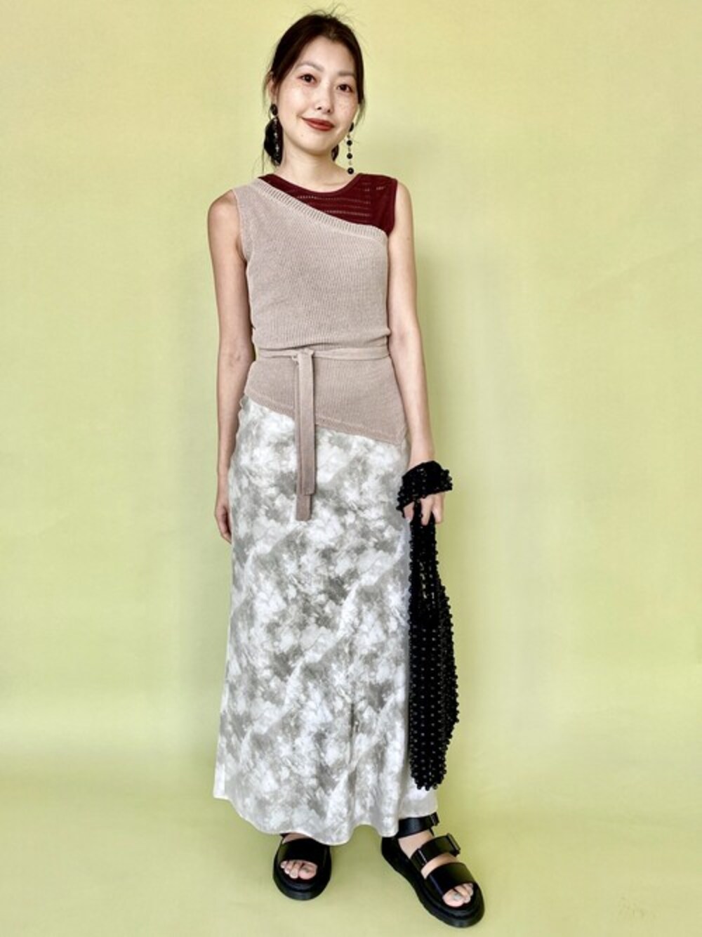 Ray BEAMS Director NAGATUKA Styling メッシュ、アシンメトリー、タイダイ柄…トレンドを詰め込んだ夏のコーディネート。Dr.Martensの別注サンダルは、つま先部分のストラップには定番のスムースレザー、2本目には上品な光沢のあるパテントレザー、足首部分にはシボ感のあるシックな印象のレザーを使用しクレイジーパターンに仕上げました。ソールは摩擦に強いエアクッションソールで、履き心地抜群。 オールブラックで存在感を放つデザインは、夏の着こなしのワンポイントに最適です。ディレクターの拘りを感じる一足!ぜひお試しください。