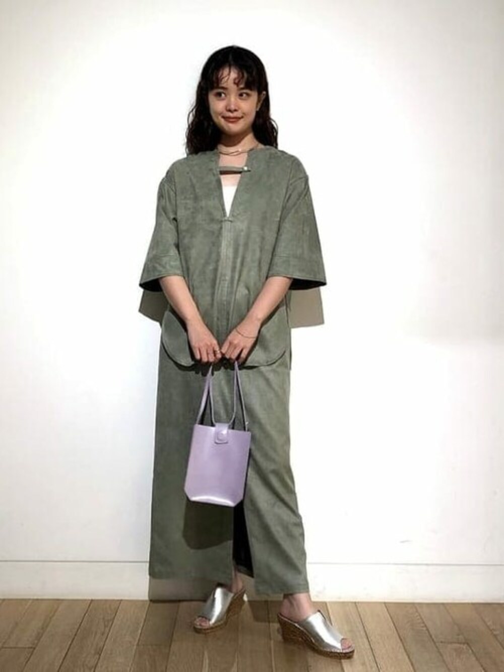Ray BEAMS(BEAMS WOMEN)のシャツ/ブラウス「Ray BEAMS / フェイクスエード スリットネック シャツ」を使ったコーディネート