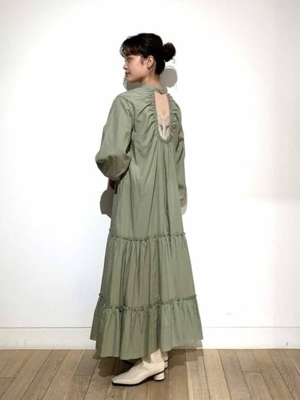 <RBS>ティアードボリュームワンピースをメインにスタイリング。柔らかいカラーと上品なデザインがとても素敵です。 バックスタイルまで可愛い無敵ワンピースです!