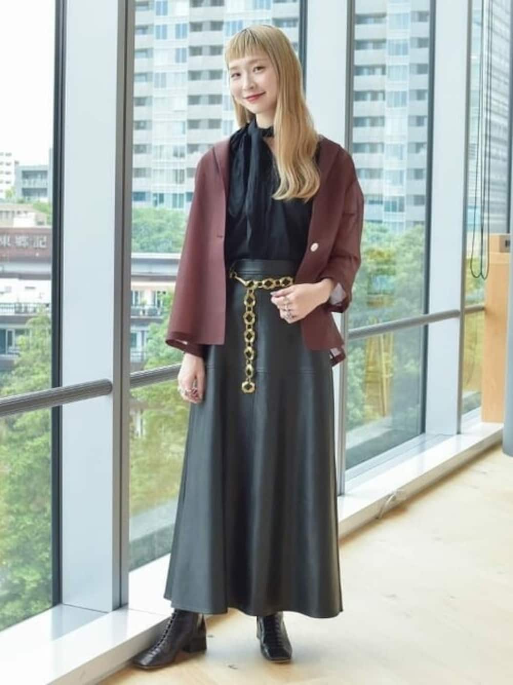 トレンドを盛り込んだスタイリングです!特にゴールドアイテムをプラスするのが今年流です。