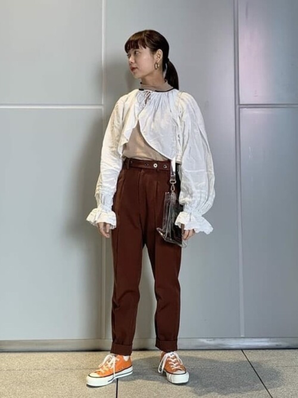 じみ~にバックを持っているのがポイントです! クリアなのでスタイリングのカラーを気にせずに持っていけます!