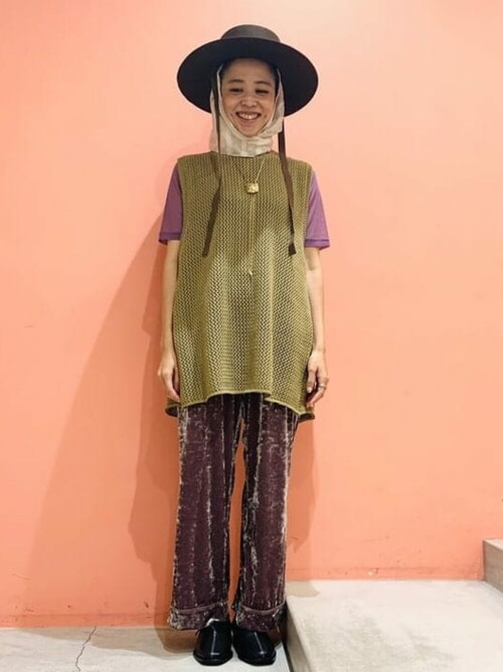 透け×透けのコーディネートです^^クラッシュベルベットがスタイリングにいい味だしてくれています。