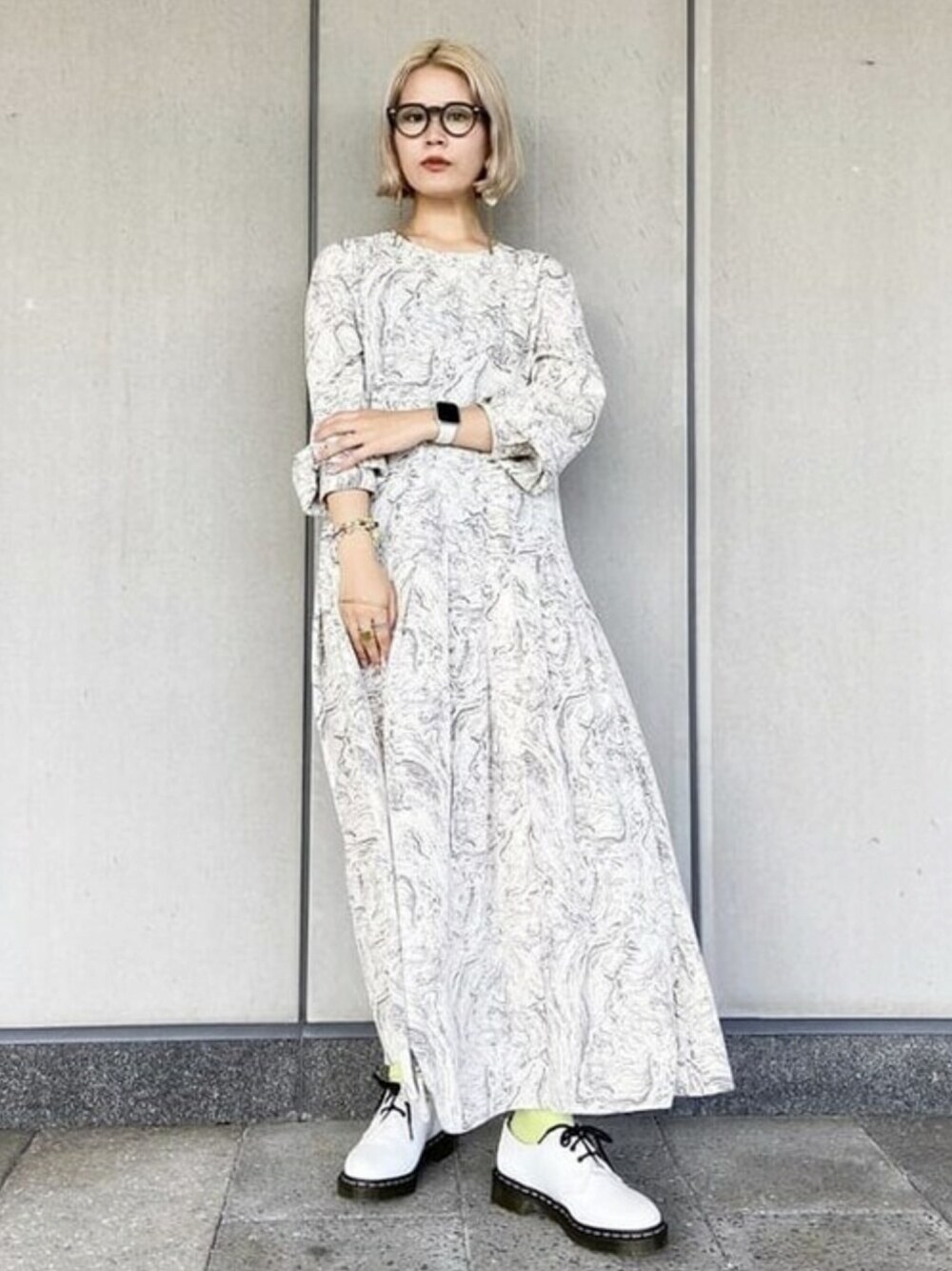 Ray BEAMS(BEAMS WOMEN)のワンピース「Ray BEAMS / マーブルプリント アシメボタン ワンピース」を使ったコーディネート