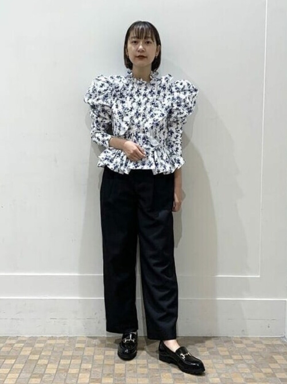 可愛いだけじゃなく、ボリュームショルダーで小顔見え効果が狙えるブラウスは今シーズンヘビロテ確実の1枚です♪そして今年は、ローファーもマストアイテムですね!