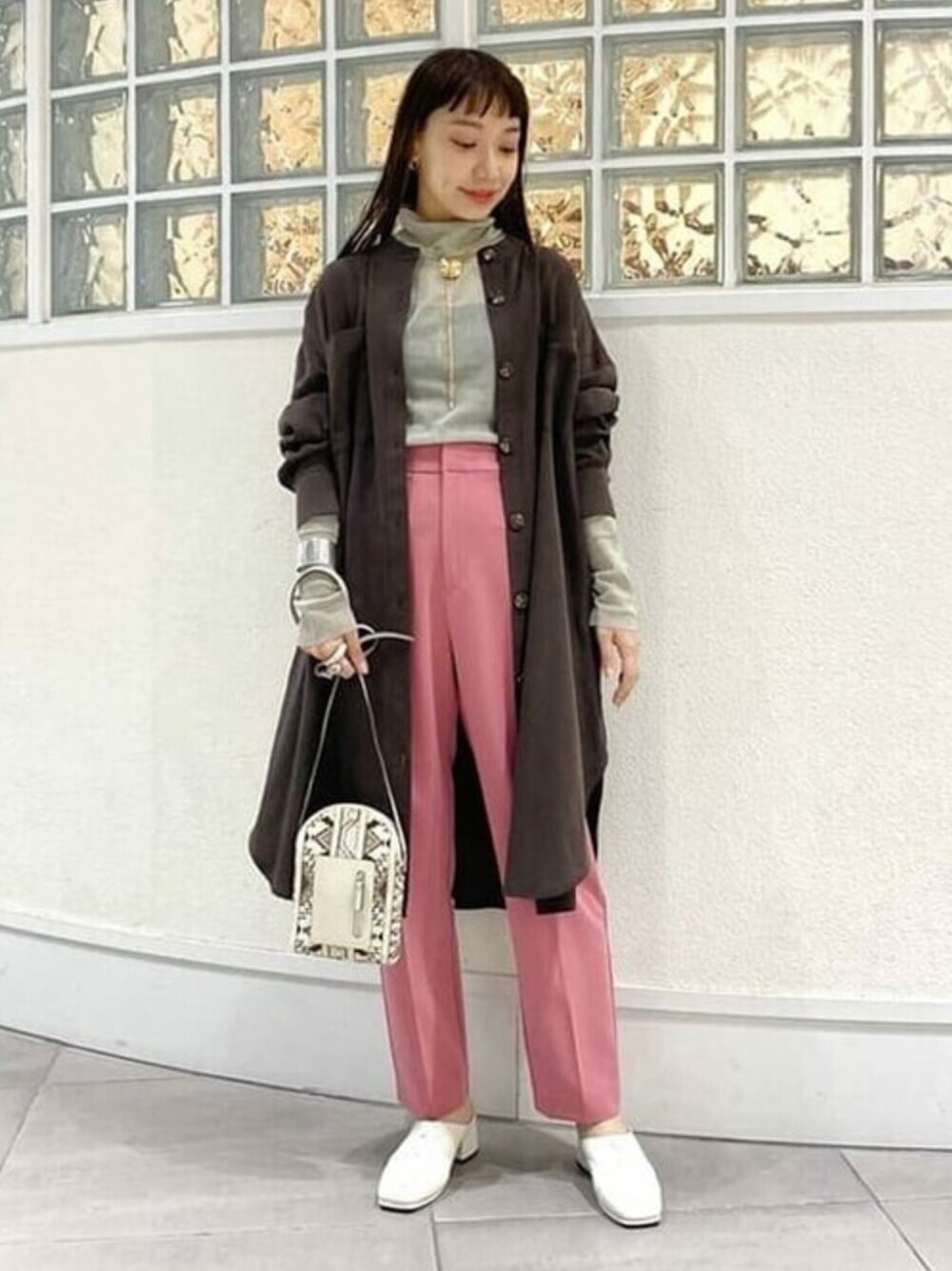 ワンピースをガウンとして着てみました♪ロールアップした袖口から、インナーを見せてバランスアップしています◎