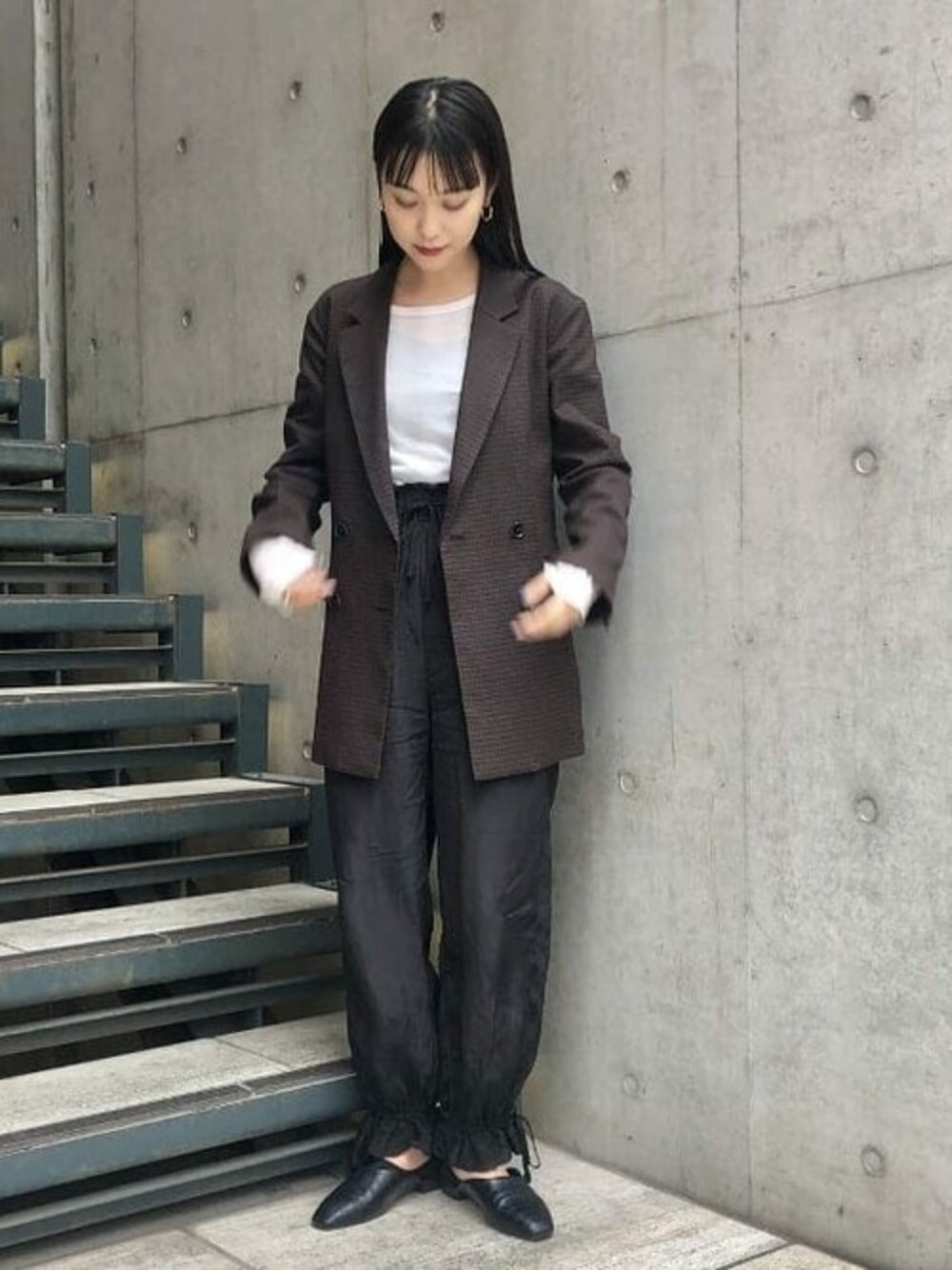 <Ray BEAMS>チェック ベルテッド 4ボタン ダブル ジャケットをメインにスタイリング。少しレトロなチェック柄がお気に入りです。