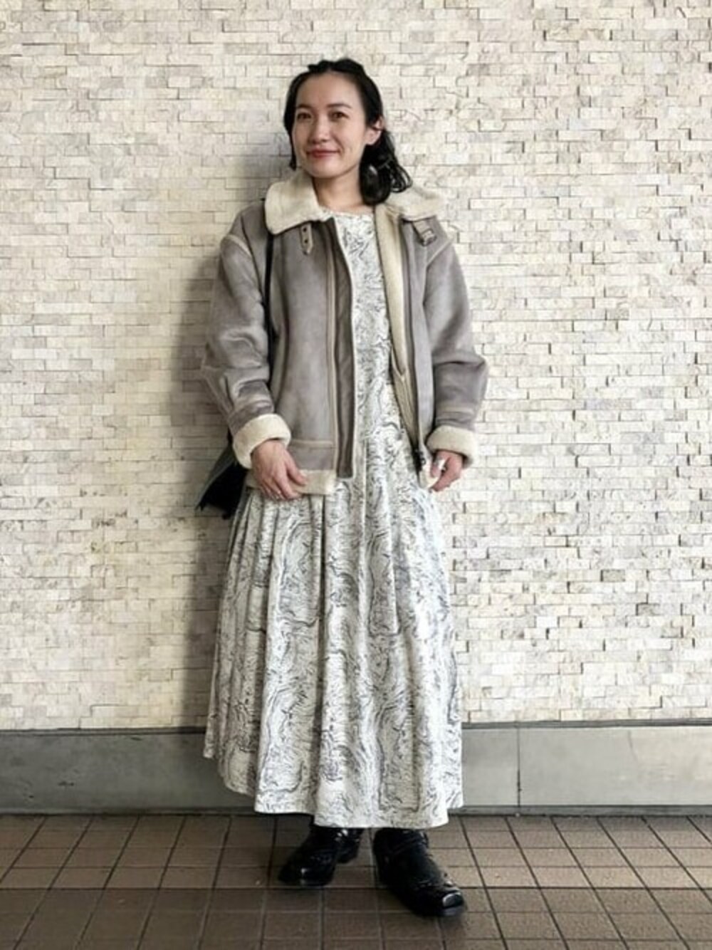 Ray BEAMS(BEAMS WOMEN)のワンピース「Ray BEAMS / マーブルプリント アシメボタン ワンピース」を使ったコーディネート