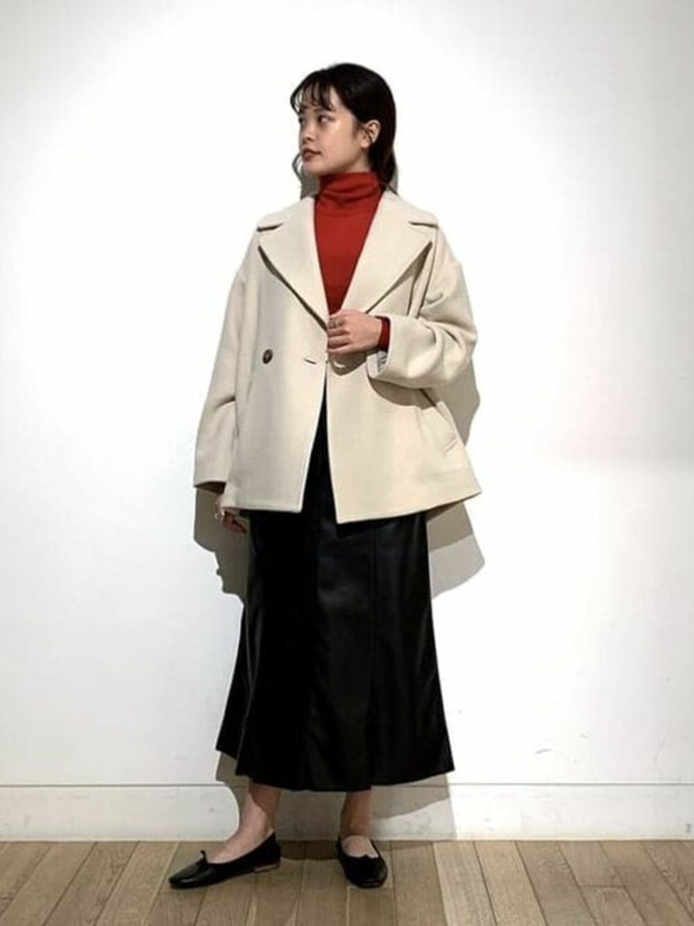 冬が近づくと〝赤〟を着たくなるので、デートっぽいコーディネートにしてみました!アウターは柔らかい印象になるように、アイボリーにしました!