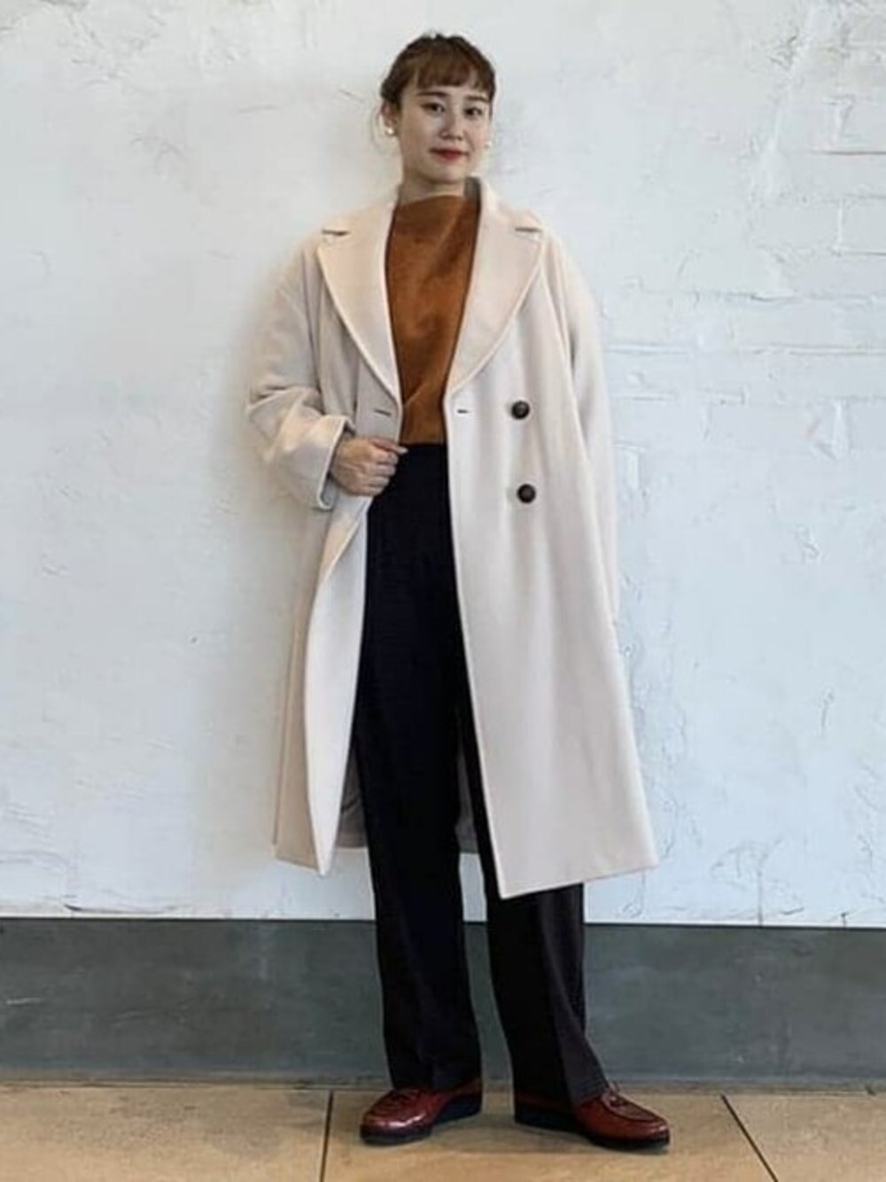 こちらのプルオーバー程よい袖のボリューム感に綿100%と着心地も抜群です◎アイボリーのダブルチェスターコートと合わせ華やかに。
